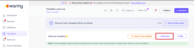 - All templates require approval before use. We typically review and approve templates within 1 business day. The warm-up process will start automatically after approval.