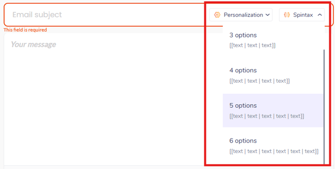 Choose the Spintax option that fits your needs, and it will automatically fill in the subject line based on the number of variations you’ve selected.