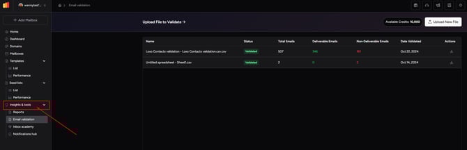 Warmy also includes an additional section called Insights & Tools, where you can access advanced features for deeper analysis, monitoring, and optimization.