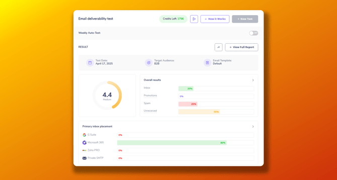 To learn more about email deliverability tests, please read our article: Email deliverability test.